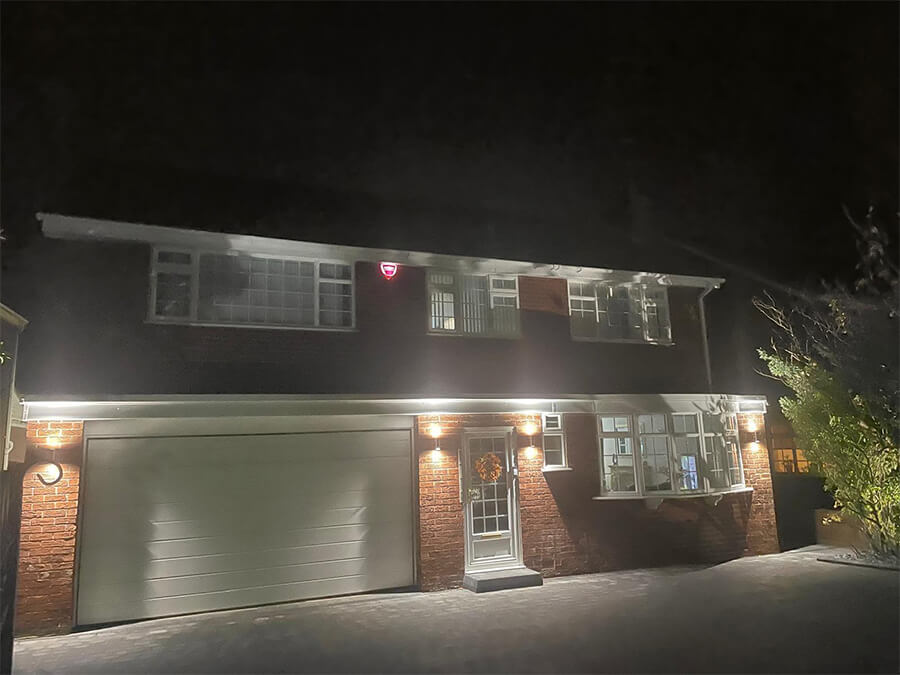 Exterior lighting upgrade completed to complement the newly landscaped driveway and front elevation. A cohesive, long-lasting and efficient exterior lighting scheme.