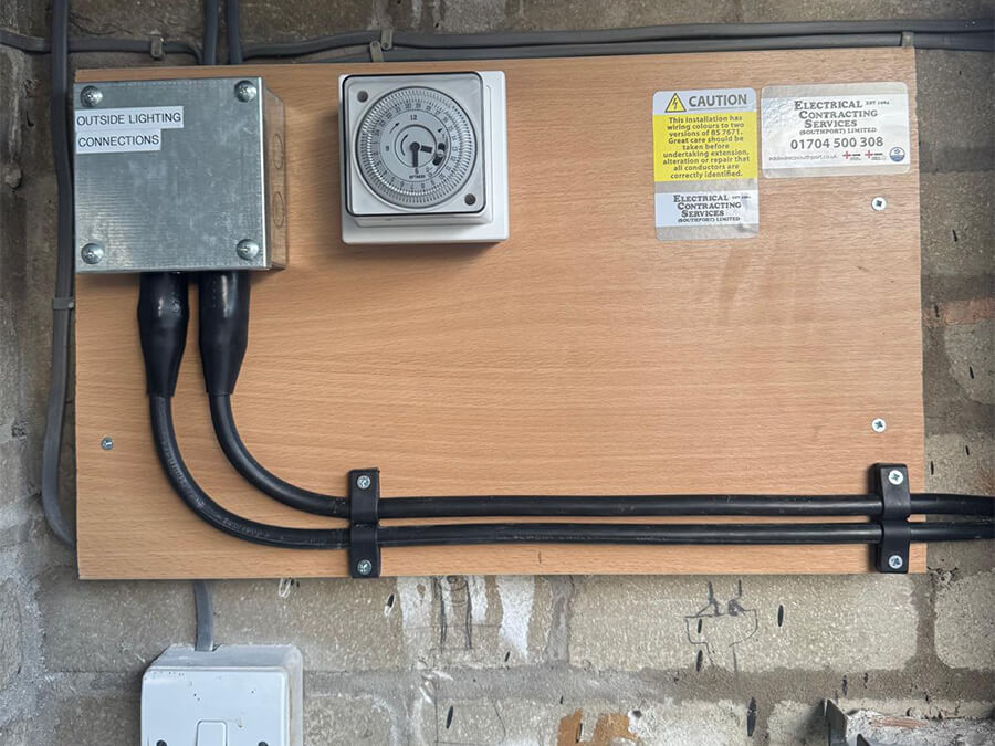 All cabling is fully concealed below surface level and routed back to a labelled junction point and time clock control, allowing the full system to operate automatically on a programmed schedule.